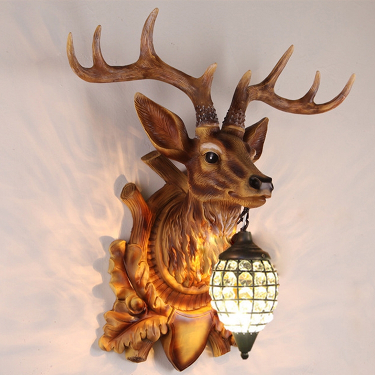 Big Retro Deer Lamps Antlers Led Wall Light Fixtures Living Room Bedroom Bedside Lamp Brown