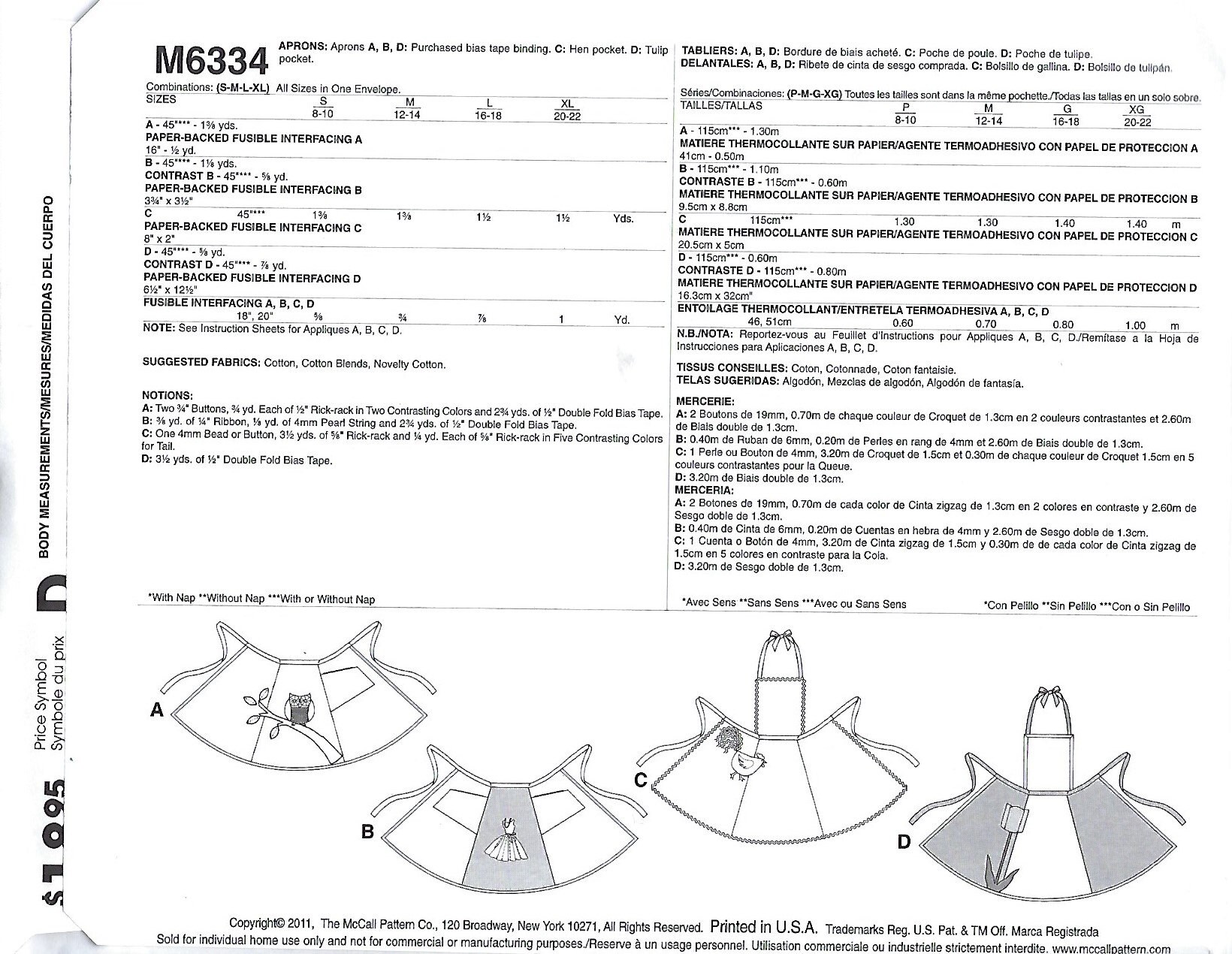 Mccalls M6334 Aprons Sewing Pattern Uncut Etsy
