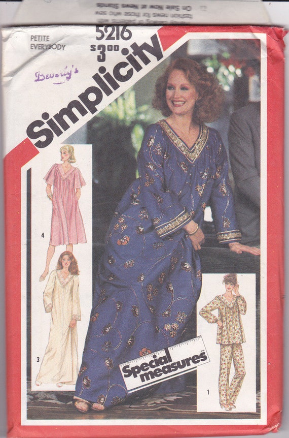Caftan Nightgown Dress And Pajamas Uncut Sewing Pattern 1980s Etsy